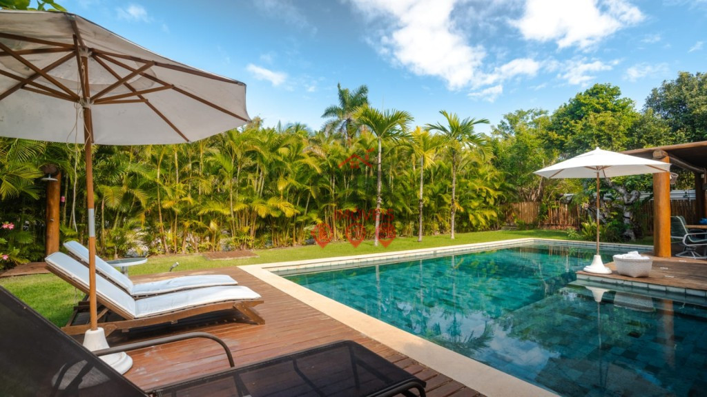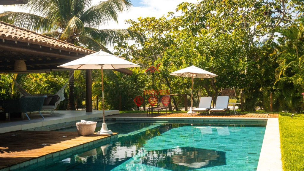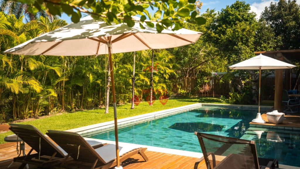 Uma piscina privativa com espaço para relaxar e se divertir sob o sol baiano.