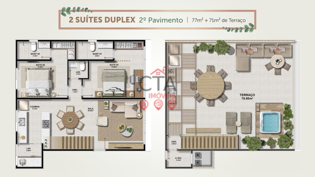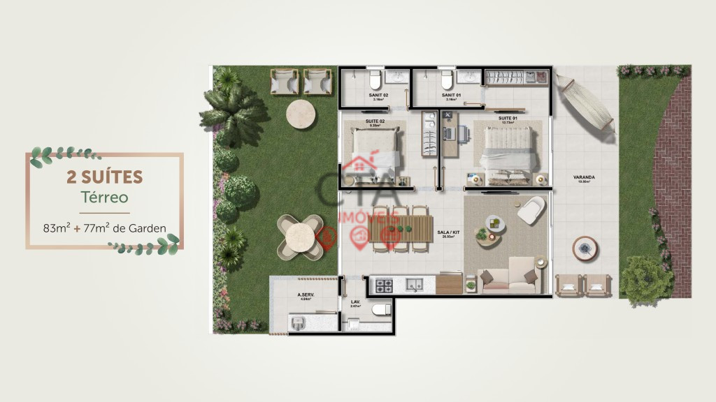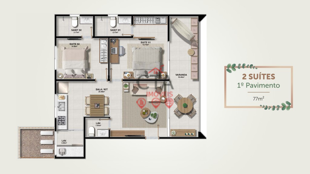 Área total: 77,00 m²