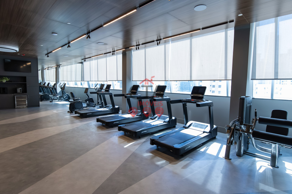 Academia completa com vista para a cidade 🏋️♀️
