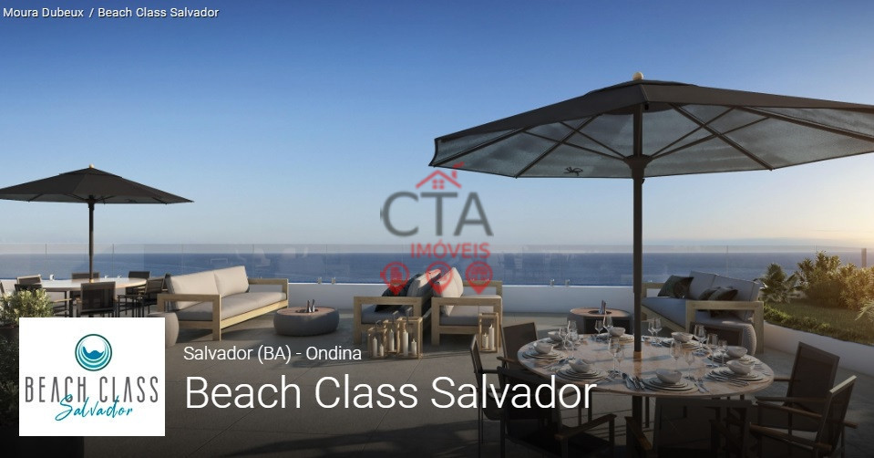 O Beach Class Salvador será o primeiro residencial compacto da Moura Dubeux na Bahia. O edifício de 21 andares e 235 apartamentos tem unidades que variam entre 29 m² e 67 m². Nas áreas de lazer, haverá piscina infantil e adulta com raia, deck molhado e borda infinita, com vista para o mar, espaço fitness, sala de reunião, coworking, coffee shop, poolside bar (bar ao lado da piscina), e um terraço com vista deslumbrante.