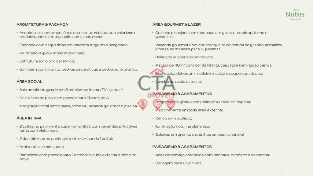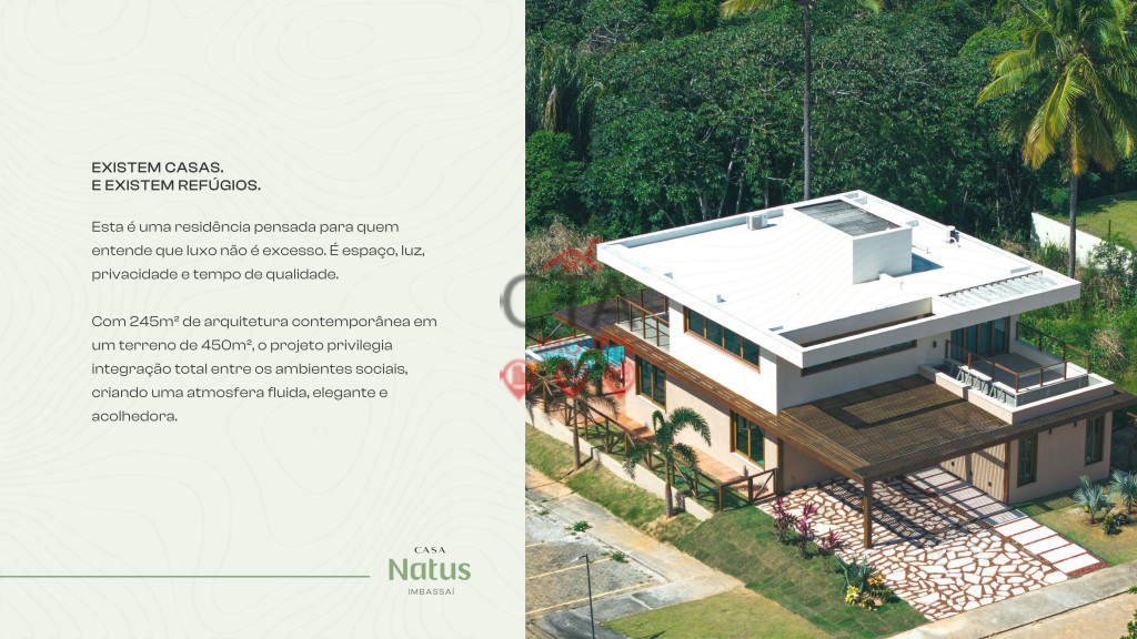 Esta não é apenas uma residência; é um projeto autoral pensado para quem entende que o verdadeiro luxo está no espaço, na luz e no tempo de qualidade. Localizada no Condomínio Natus, dentro do prestigiado complexo Reserva Imbassaí, onde o rio e o mar se encontram em perfeita harmonia. 🏝️