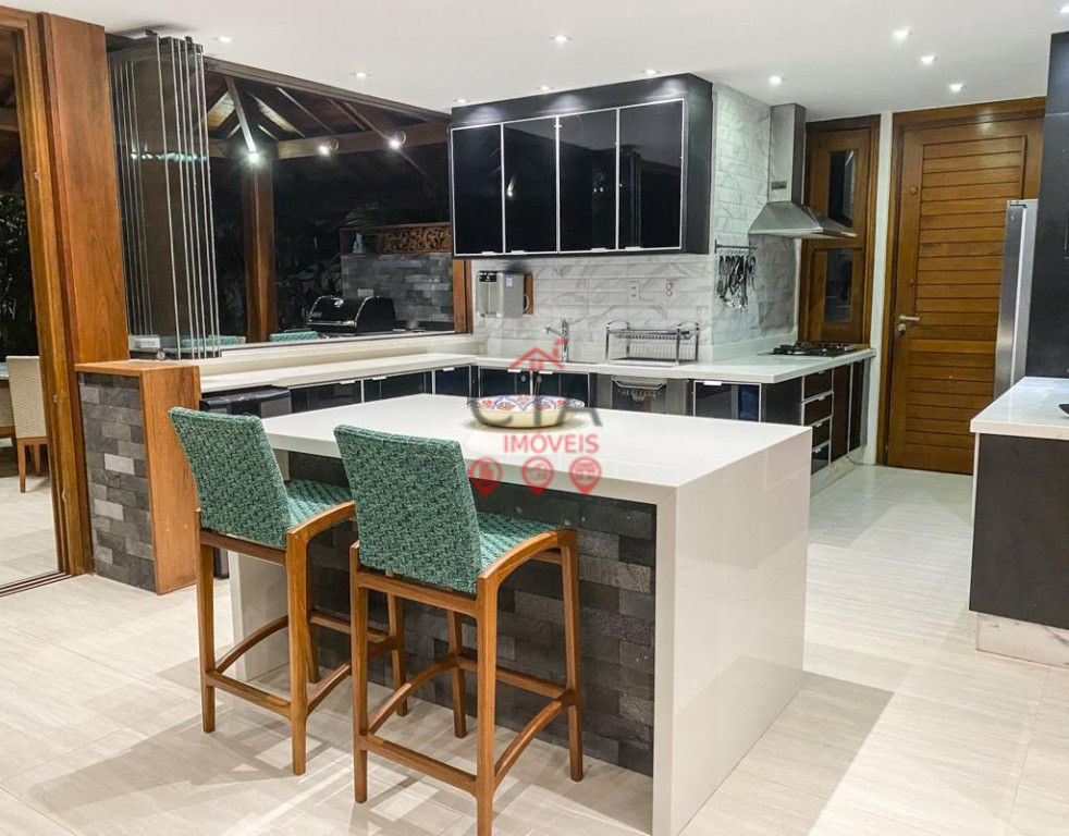 5 suítes, sendo 3 no 1 andar e uma sala intima de tv, o térreo possui living com estar, jantar e sala de Tv, suíte de hóspede, lavabo, cozinha e área de serviço, anexo a casa com uma suíte master, com banheira de hidromassagem.