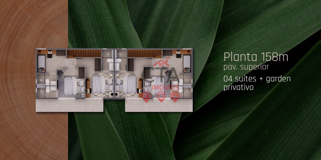 Casas de 158m²: 4 suítes + garden privativo.