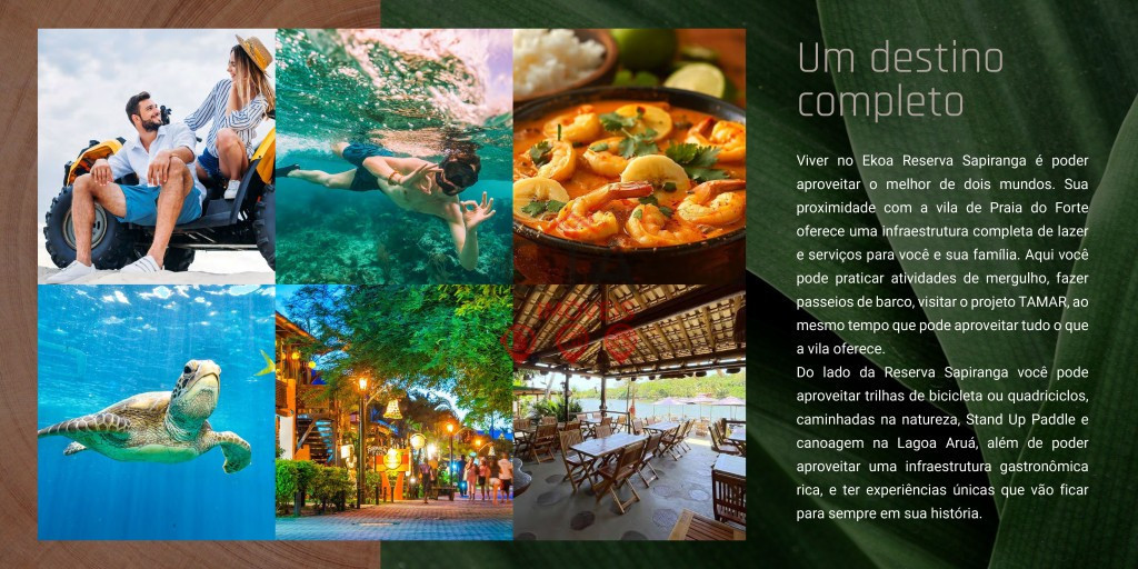 O EKOA Reserva Sapiranga é um empreendimento exclusivo em Praia do Forte, com casas de 3 e 4 suítes e opção de plantas personalizadas. Localizado na belíssima Reserva Sapiranga, ao lado de piscinas naturais e trilhas ecológicas, oferece lazer completo, contato direto com a natureza e o charme de um dos destinos turísticos mais desejados do Litoral Norte da Bahia.