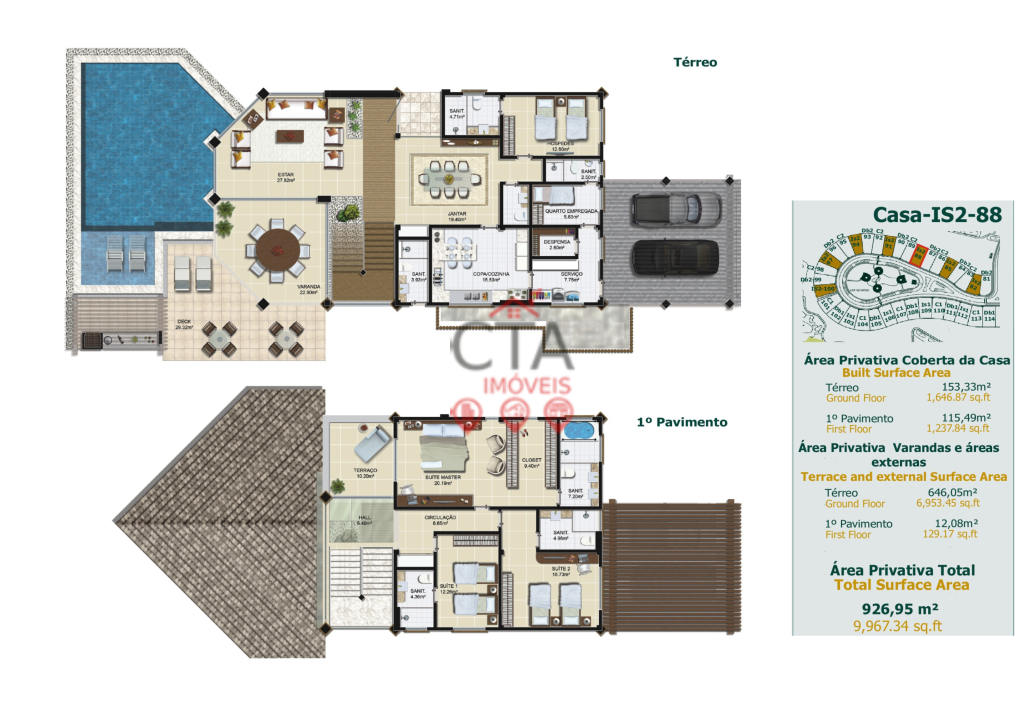 Casas de luxo na Praia do Forte. Um excelente investimento imobiliário no Brasil junto a um espetacular campo de golfe. O prestigiado arquiteto David Bastos concebeu para o IBEROSTATE casas exclusivas que se destacam pela harmonia perfeita entre beleza e funcionalidade. Sua privilegiada localização, seus materiais de primeira qualidade e os serviços próprios de um complexo 5 estrelas as tornam uma oportunidade única para desfrutar do que há de mais luxuoso no Brasil. Estilo Estilo contemporâneo onde conforto e funcionalidade se combinam com a estética inovadora. Seu design de inspiração colonial destaca-se pela imaginação e a criatividade com a utilização de materiais nobres, criando ambientes sofisticados, espaçosos e com perfeita integração entre interior e exterior. Localização A muito poucos metros da praia e perto dos buracos 17 e 18 do campo de golfe do resort, sua localização é ideal. Situadas em uma vila exclusiva com magníficas áreas comuns, rodeada de jardins e imponente natureza nativa. Escolha o seu imóvel ideal Casas exclusivas de estilo contemporâneo onde o conforto e a funcionalidade se combinam com a estética mais avançada. Quase 300 m2 de superfície construída distribuída em dois andares, com quatro amplos dormitórios e espetaculares jardins com piscina.