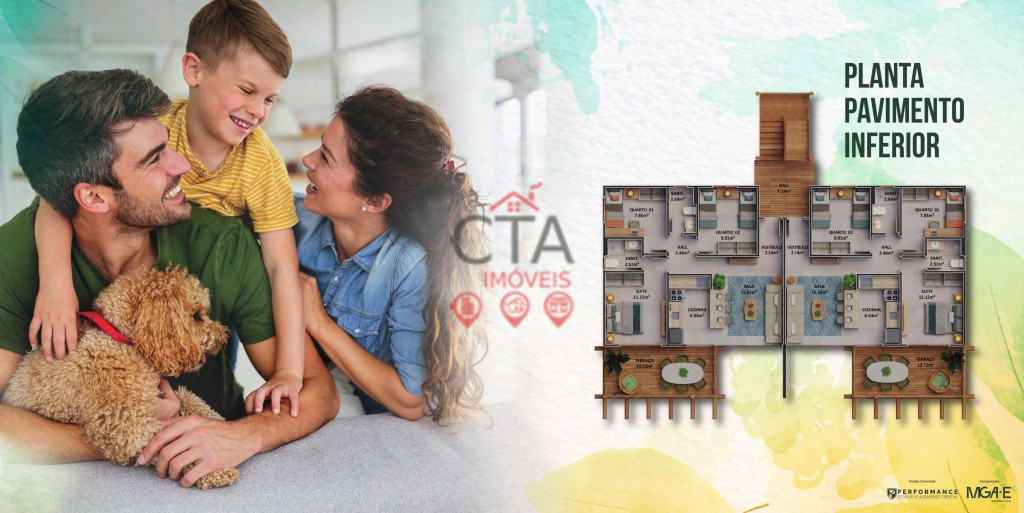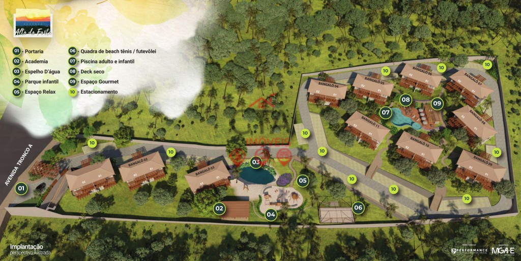 Área do terreno: 15.321m2 Quantidade de bangalôs: 11 Unidades por bangalôs: 4 Total de unidades: 44 Tipologia: 76m²